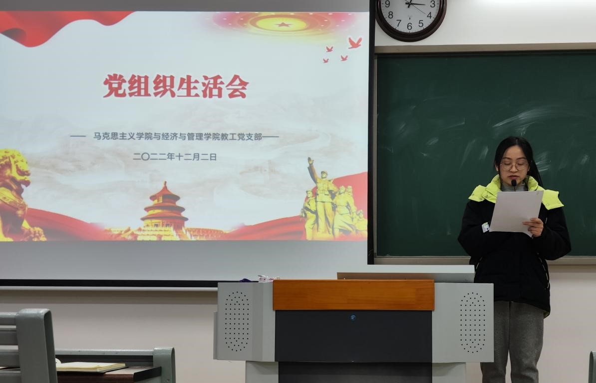 为深入学习宣传贯彻党的二十大精神及内涵,贯彻落实中国共产党章程的相关要求,2022年12月2日,在一教214教室,开云kaiyun官方网站与经济管理学院教工党支部开展了组织生活会暨党的二十大重要精神专题学习活动。本次会议由经济与管理学院教工支部书记刘路路主持。
