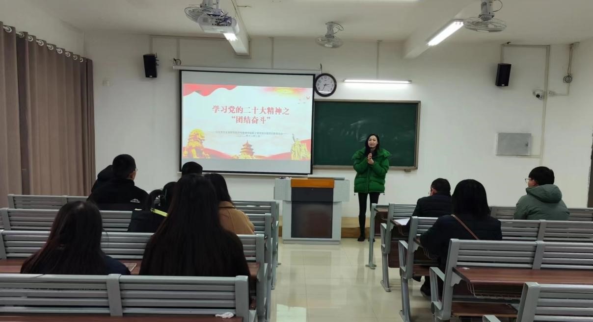 会上,淮北市市委宣传部宣讲团成员、开云kaiyun官方网站孙澄澄老师以“团结奋斗”为主题,带领全体党员学习了党的二十大精神,并畅通自己的学习体会。孙澄澄同志指出:学习贯彻党的二十大精神,必须牢牢把握团结奋斗的时代要求,心往一处想、劲往一处使,以更加紧密的团结、更加顽强的奋斗,不断把民族复兴伟业推向前进。党的二十大报告指出:“团结奋斗是中国人民创造历史伟业的必由之路。这是深刻总结中国共产党百年奋斗史得出的历史结论,也是总结新时代十年伟大变革实践得出的宝贵经验。”