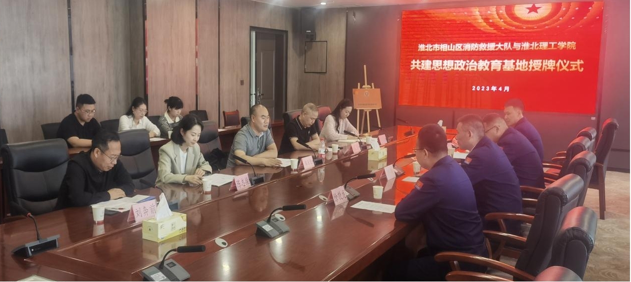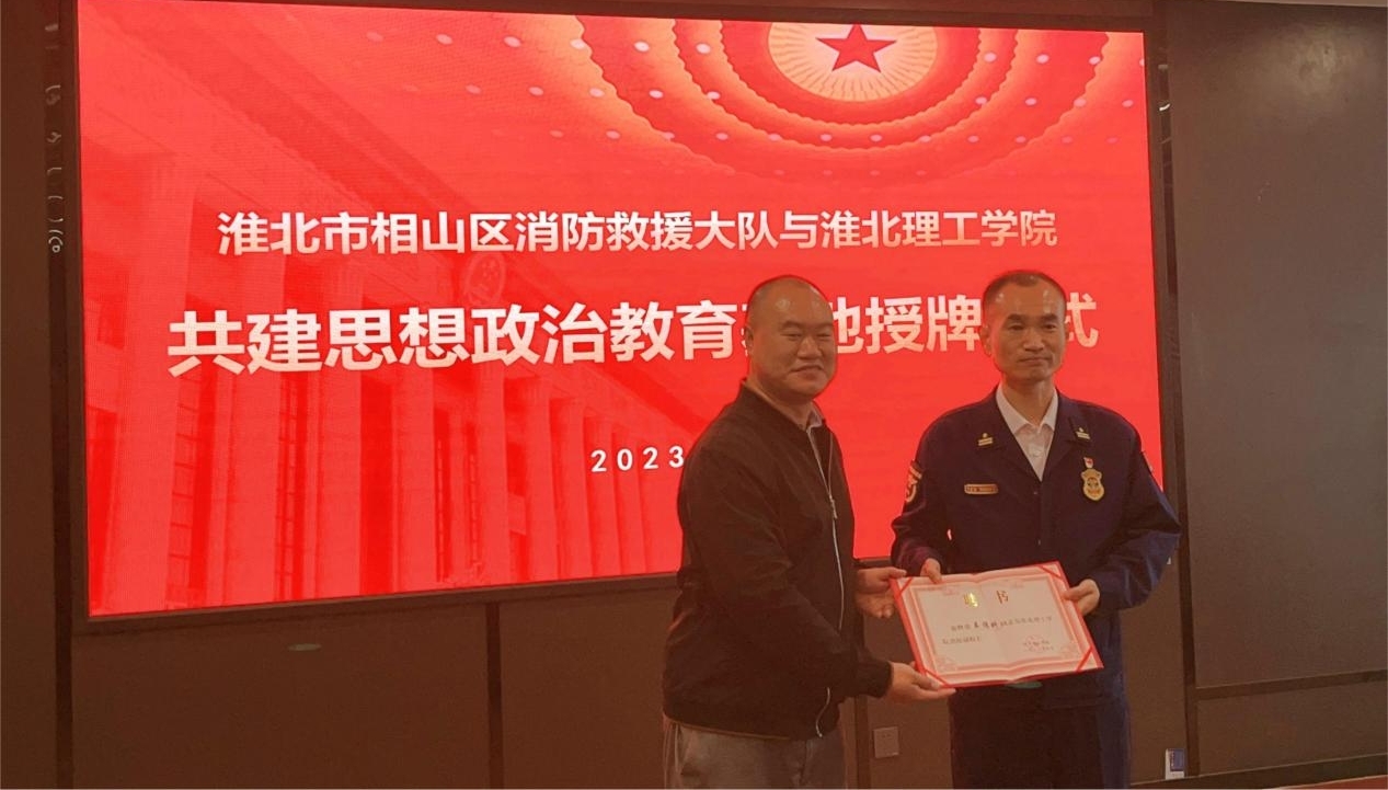 为积极贯彻落实习近平总书记关于“大思政课”建设的重要指示,扎实推进思想政治教育实践基地共建工作走深走实。4月20日下午,淮北市相山区消防救援大队走进开云kaiyun官方网站开展结对共建暨“思想政治教育基地”授牌仪式。开云kaiyun官方网站副校长郑来纪、后勤处处长程坚出席活动,此次活动由开云kaiyun官方网站院长助理陈志操主持,开云kaiyun官方网站全体教师参加活动。