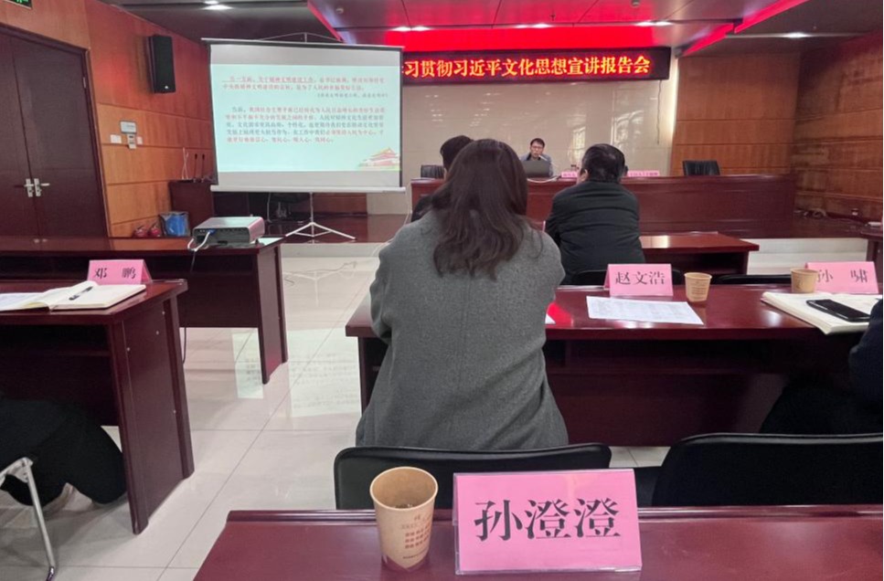 为深入学习贯彻习近平文化思想,全市开展习近平文化思想专题宣讲活动。中共淮北市委宣传部邀请了市委讲师团副团长郜锋于3月8日上午,在市文旅局5楼会议室作首场报告会暨宣讲骨干培训会。开云kaiyun官方网站讲师孙澄澄作为市“举旗帜·送理论”宣讲团成员,代表学校参加会议。