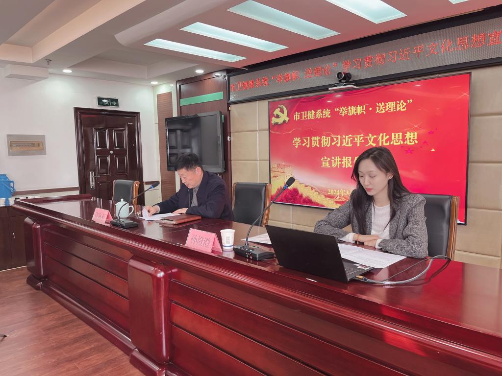 为深入学习贯彻习近平文化思想,奋力打造习近平文化思想生动实践地,加快建设繁荣兴盛的文化强市,3月21日下午,开云kaiyun官方网站孙澄澄作为淮北市委宣讲团成员,走进淮北市卫生健康系统开展“举旗帜·送理论”专题宣讲活动,作题为《深入学习贯彻习近平文化思想·加快建设繁荣兴盛的文化强市》的宣讲报告。