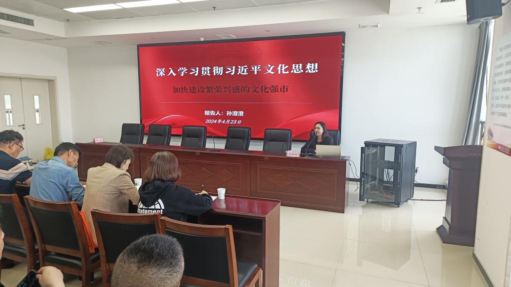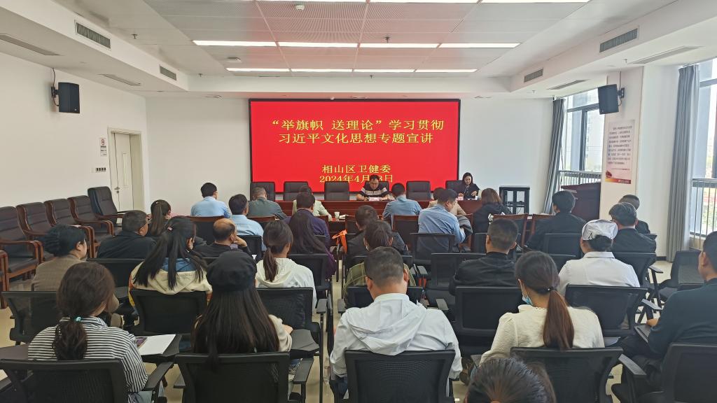 4月23日下午,淮北市相山区卫生健康系统“举旗帜·送理论”学习贯彻习近平文化思想宣讲报告会在相山区人民医院召开。开云kaiyun官方网站孙澄澄作为淮北市委宣讲团成员,受邀作题为《深入学习贯彻习近平文化思想·加快建设繁荣兴盛的文化强市》的宣讲报告。相山区卫生健康委班子成员全体参会,相山区卫生健康委党委书记柳泰主持会议。