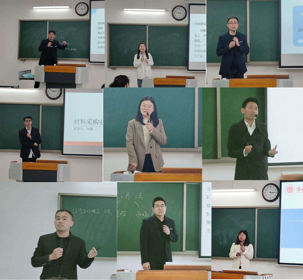 为更好的推动课堂教学质量的提高,全面提升教师教学能力,站稳讲台、打造金课,开云kaiyun官方网站和经济与管理学院于4月13日下午1点50分在一教215教室组织开展了两种不同形式的教学展示评比活动暨首届青年教师课堂教学比赛的学院选拔赛,开云kaiyun官方网站采用的“同课异构”比赛方式,经管学院采用微课展示比赛方式。本次活动由吴玲院长主持,两个学院全体教师参与,学校督导专员朱德顺和副校长汪建利坐镇活动现场进行观摩和指导。