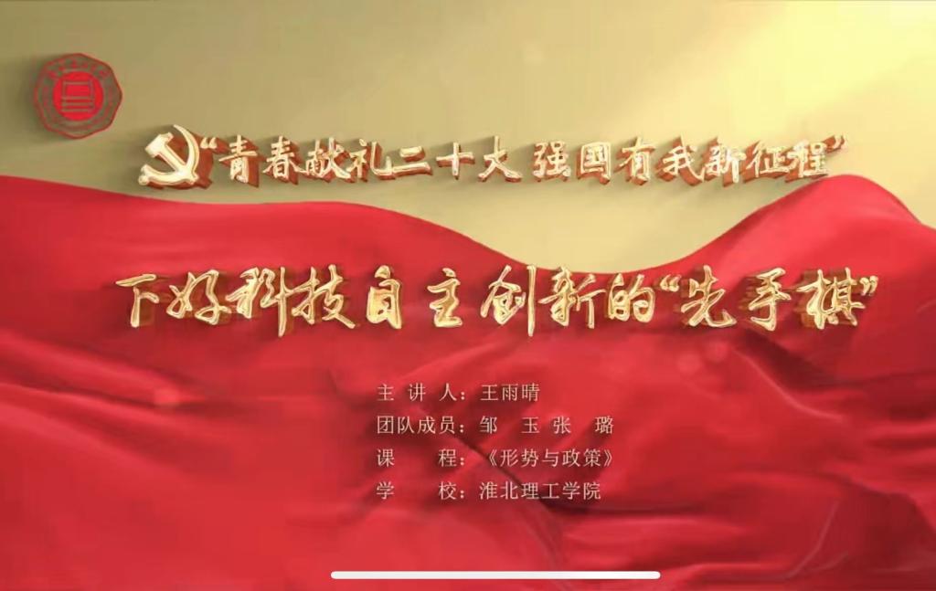 近日,安徽省首届以“青春献礼二十大,强国有我新征程”为主题的大学生讲思政课片区赛圆满落幕,经皖北片区赛激烈角逐,由我校开云kaiyun官方网站孙澄澄老师指导,经管学院选送的王雨晴同学团队主讲的思政公开课《下好科技自主创新的“先手棋”》喜获二等奖,并将代表学校参加省级决赛。