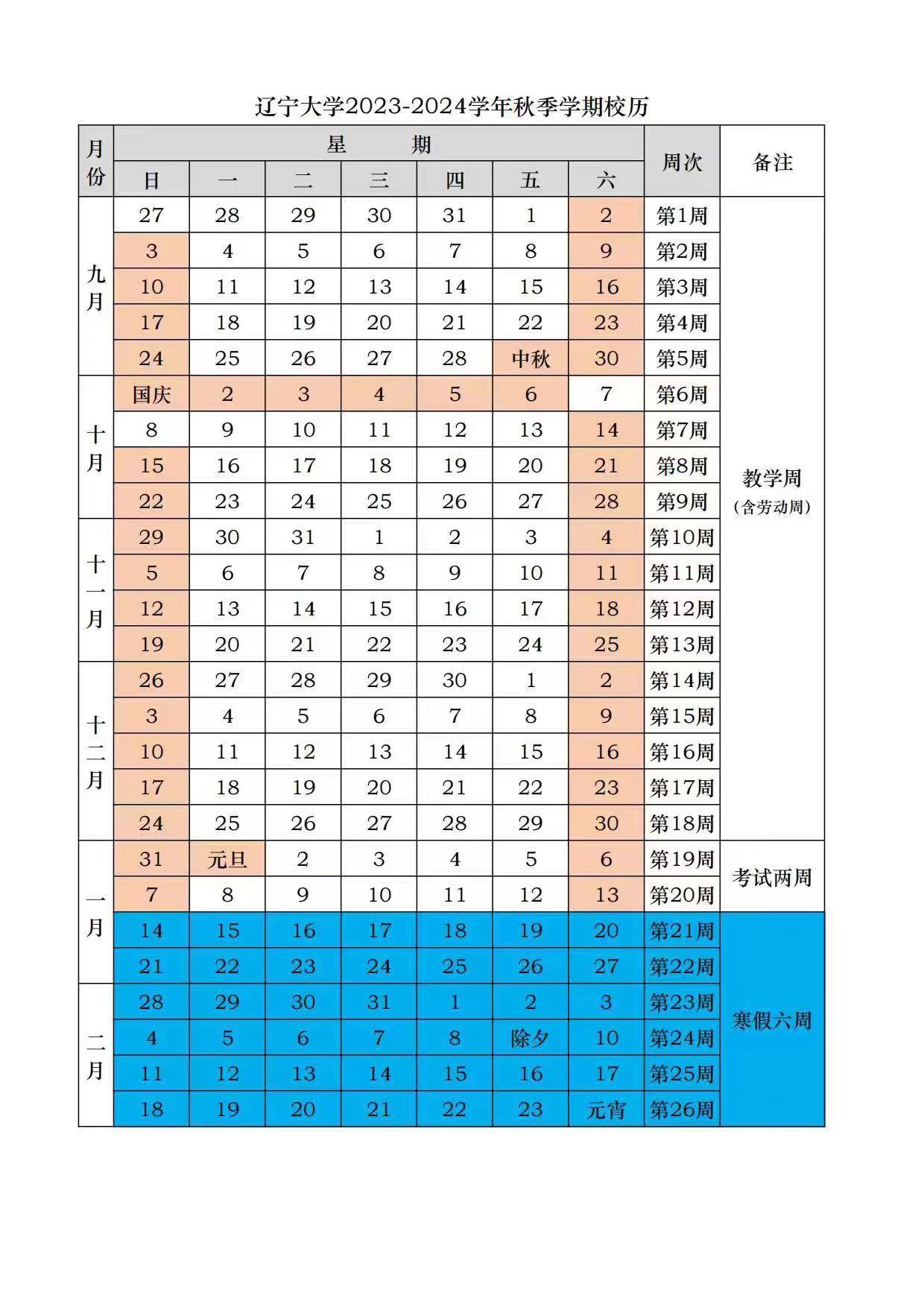beat365中文官方网站2023-2024学年秋季学期校历