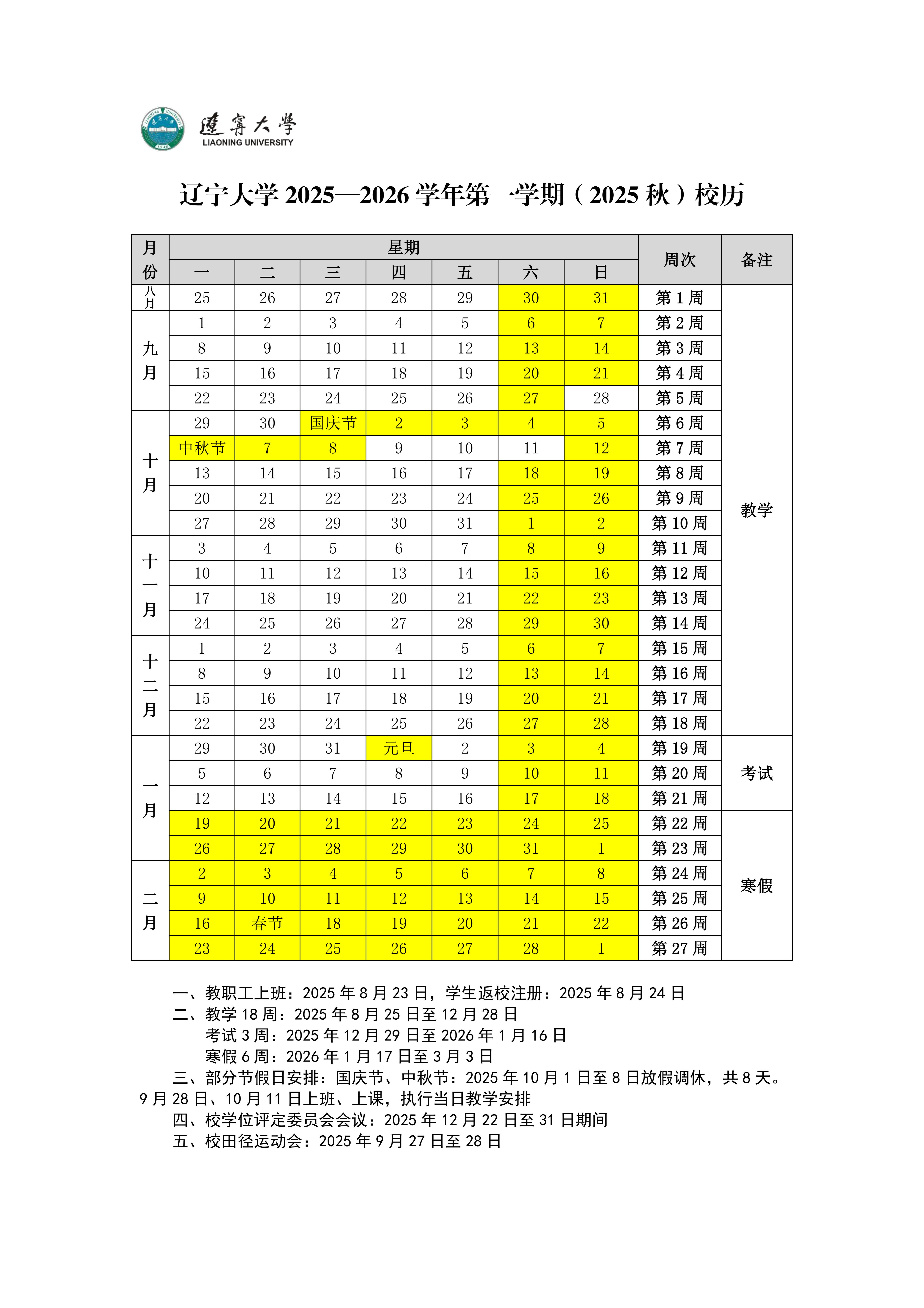 beat365中文官方网站2025-2026学年第一学期(2025秋)校历