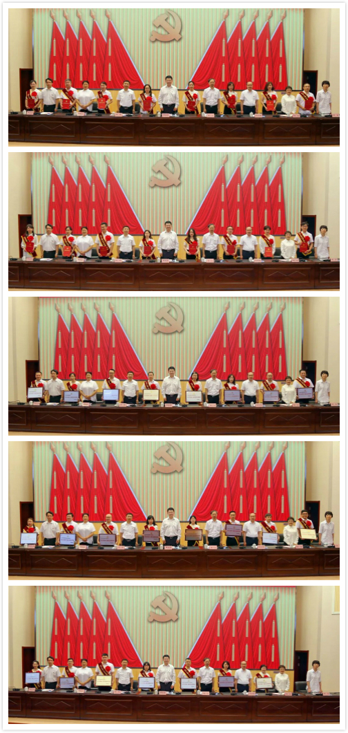 校党委班子成员为受到省委教育工委和学校党委表彰的优秀共产党员、优秀党务工作者和先进基层党组织颁奖。