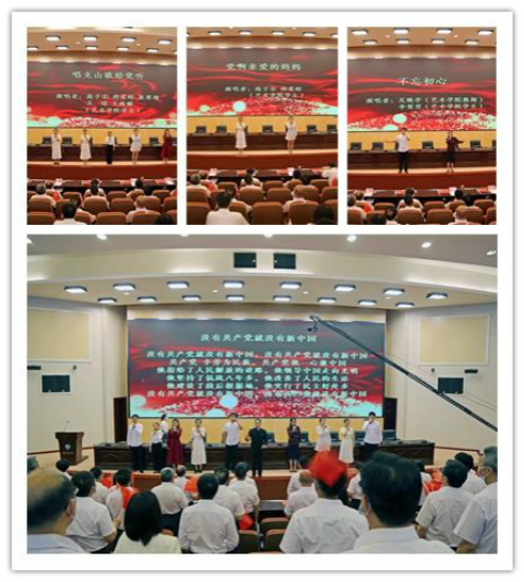 大会开始前,beat365中文官方网站师生共同观看了《百年恰是风华正茂》《路》等建党百年微视频,并以快闪表演礼赞建党百年。师生代表倾情演唱了《唱支山歌给党听》《党啊亲爱的妈妈》《不忘初心》等经典歌曲,与会同志共同高唱《没有共产党就没有新中国》,在歌声中祝福党的百年华诞。