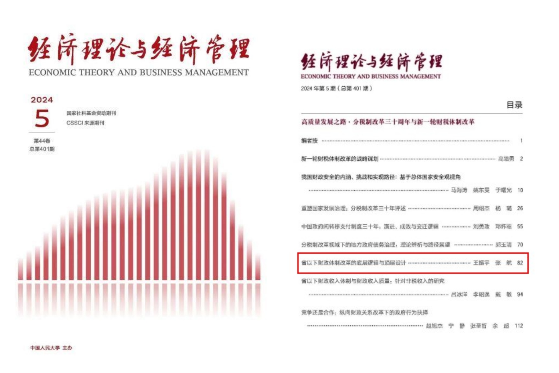 beat365中文官方网站经济学院王振宇教授与博士研究生张航合作撰写的论文《省以下财政体制改革的底层逻辑与顶层设计》在《经济理论与经济管理》2024年第5期发表。