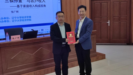 经济学院张广辉教授应邀作了题为《农村承包地“三权分置”与农户收入——基于家庭收入构成的视角》的学术报告。报告以党的二十大报告中“促进共同富裕,最艰巨最繁重的任务仍然在农村”“农民农村共同富裕的核心是农民收入问题”为背景,结合当前农村空心化、农业边缘化、农民老龄化等现象,提出农村土地流转能否提高农民收入水平及如何影响农民收入等问题,阐释了农村承包地“三权分置”影响农民收入的机理,并通过2014年和2016年全国25个省、自治区及直辖市的面板数据进行了实证分析,得出农村承包地“三权分置”对农户家庭收入与分项收入具有重要影响,通过土地流转会对农户家庭收入与分项收入产生异质性影响等结论,进而提出要深入推进农村承包地“三权分置”、完善农村土地流转市场、因地制宜推动农业农村发展的建议。