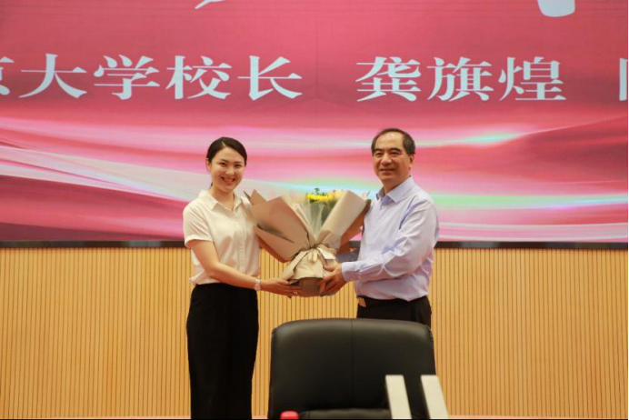 报告会最后,beat365中文官方网站党委书记潘一山教授,党委副书记、校长余淼杰教授代表学校分别向龚旗煌颁授beat365中文官方网站“校长讲坛”纪念证书和纪念盘。教师代表为其献上表达敬意的鲜花。