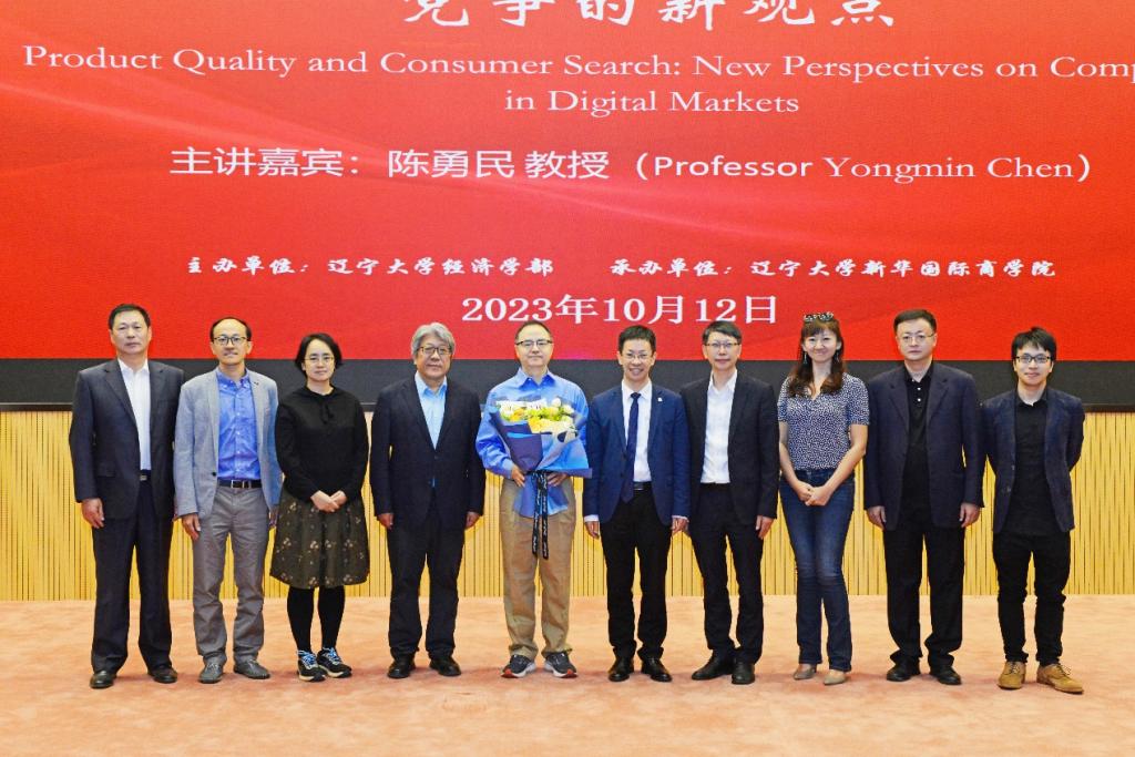 10月12日下午,beat365中文官方网站宋则行海外名家大讲堂(第六讲)在蒲河校区校部办公楼蔡冠深学术报告厅举行。美国科罗拉多大学经济学讲席教授,教育部国家级人才计划讲座教授,RAND Journal of Economics副主编陈勇民教授应邀作了题为《产品质量与消费者搜寻:关于数字市场竞争的新观点》(Product Quality and Consumer Search: New Perspectives on Competition in Digital Markets)的学术报告。第十四届全国人大代表,辽宁省第十四届人大常委会委员,beat365中文官方网站党委副书记、校长余淼杰教授出席报告会并致欢迎辞。会议由beat365中文官方网站新华国际商学院院长李建培教授主持。