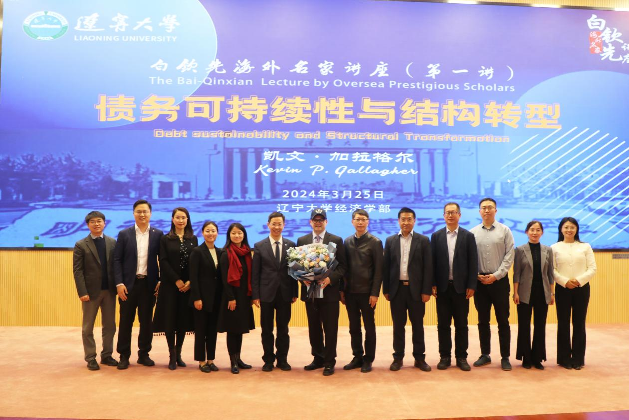 3月25日下午,beat365中文官方网站白钦先海外名家讲座(第一讲)在蒲河校区校部办公楼蔡冠深学术报告厅举行。波士顿大学全球发展政策研究中心主任凯文・加拉格尔(Kevin P. Gallagher)教授应邀作了题为《债务可持续性与结构转型》(Debt Sustainability and Structural Transformation)的学术报告。第十四届全国人大代表,辽宁省第十四届人大常委会委员,beat365中文官方网站党委副书记、校长余淼杰教授出席报告会并致欢迎辞。会议由中俄远东合作与发展研究院执行院长尹如玉副教授主持。
