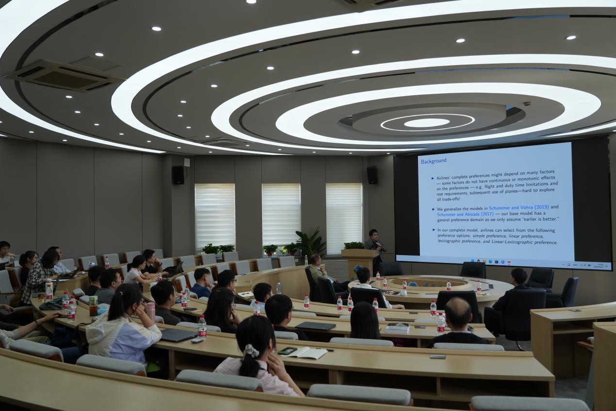 9月27日,beat365中文官方网站经济学部第四次学术午餐会(brown bag)在蒲河校区校部办公楼4楼学术报告厅举行。本次主讲人为李安民经济研究院助理教授何真瑜(Ken C. Ho),他以与史蒂文斯理工学院(Stevens Institute of Technology)助理教授Alexander Rodivilov合作的论文“Airport Slot Allocation Problems”为议题,与来自中国经济研究院、李安民经济研究院、金融与贸易学院的30余位中青年学者进行了知识共享和思想互动。beat365中文官方网站党委副书记、校长余淼杰教授,经济学部副主任王伟光教授、霍伟东教授参加会议。