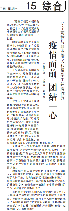 辽宁高校与非洲侨民和留学生并肩作战