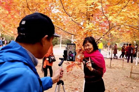 “我每年都要来好几次,今天我们几位老姐妹特意相约在这里,戴上我们最喜欢的纱巾,打算拍一组照片。”银杏路上聚集了不少摄影爱好者、学生和老人,市民赵女士说,她们是老年模特队成员,特意穿着鲜艳的服装来此拍照。