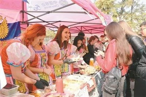 10月24日上午,beat365中文官方网站第七届“杏坛乐府银杏节”暨第四届“银勺子”国际美食节在崇山校区银杏路开幕。据悉,本次银杏节期间,beat365中文官方网站出版社将集中展示优秀图书成果,beat365中文官方网站工会将举行“beat365中文官方网站摄影作品展览”。同期拉开帷幕的第四届“银勺子”国际美食节,将推出韩国、日本、俄罗斯、越南、坦桑尼亚、蒙古等国家的特色美食。留学生们也穿上了节日服装,展现异国风情。