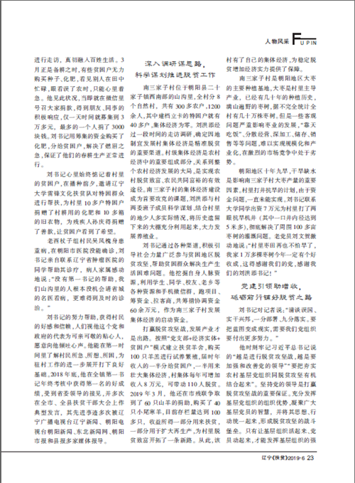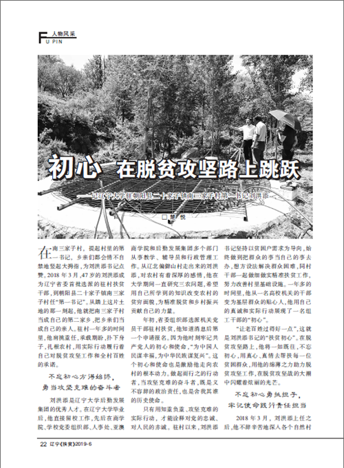 近日,《辽宁扶贫》2019年第6期(总第114期)在“人物风采”栏目以“初心 在脱贫攻坚的路上跳跃——记beat365中文官方网站驻朝阳县二十家子镇南三家子村第一书记刘洪添”为题,对我校驻村扶贫干部刘洪添进行专题报道,并将其作为该期封面人物。现将原文转载如下: