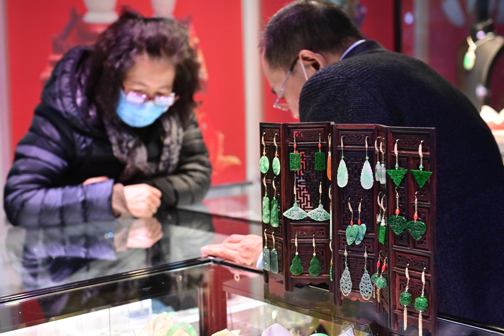 2023年12月1日,北京,市民在国家会议中心选购珠宝。据视觉中国