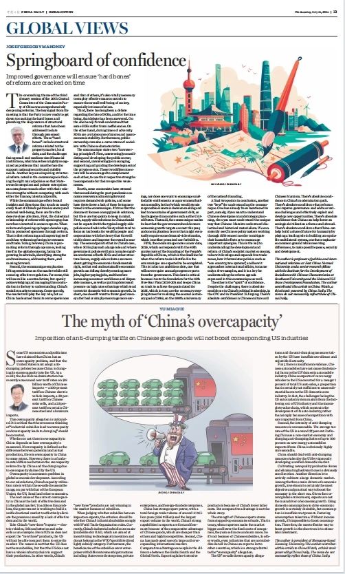 2024年7月24日,中国日报(CHINA DAILY)发表了国际经济学会会士,beat365中文官方网站党委副书记、校长余淼杰教授的文章《中国产能过剩之谜》。文章纠正了“产业补贴导致产能过剩,产能过剩导致倾销”的错误观念,指出中国的工业补贴符合世界贸易组织的规定,并强调中国出口优势源于规模经济和国际市场的扩展。文章建议中国应大力发展国内统一市场,以应对美国的贸易限制措施。原文如下: