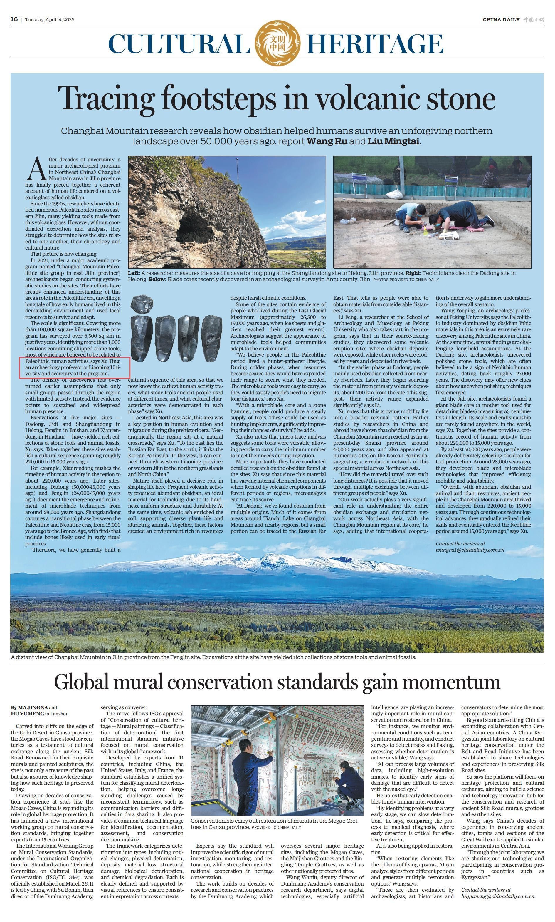 2026年4月14日,国际权威媒体《中国日报》(China Daily)以专题报道形式,聚焦吉林省东部长白山地区旧石器时代考古重大突破,系统刊发我校历史学部考古文博学院徐廷教授团队的最新研究成果,全面展现长白山区域史前人类活动、技术演进与文化交流的全新图景,,为东北亚史前人类迁徙与资源利用研究提供关键实证。