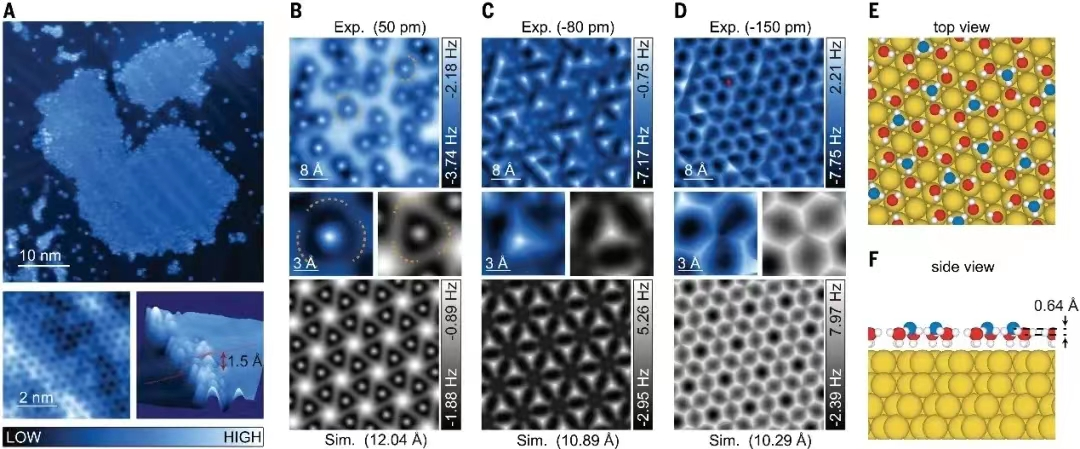 图 2. Au(111) 表面自组装本征水单分子层的原子结构