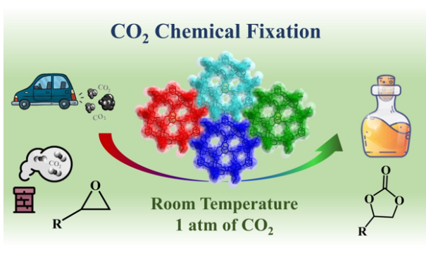日前,化学院韩正波教授课题组在金属有机多面体领域取得新进展,相关研究成果在国际著名化学期刊Chemical Communications发表。金属有机多面体(MOPs)作为一类新型材料,因其具有灵活的拓扑结构及功能化的限域空间,在催化、分离、主客体化学等方面显示出巨大的应用前景。beat365中文官方网站化学院韩正波教授研究团队采用4-连接Cu2(COO)4轮桨单元和3-连接半刚性羧酸配体利用溶剂热法设计合成一例具有rdo拓扑结构的MOPs材料:[Cu12(TCPT)8(H2O)6(DMF)6]·xS (Cu-MOP)。该材料具有高密度Lewis酸性Cu(II)中心,及在有限纳米空间中存在富氮配体,故Cu-MOP具有高度选择性吸附CO2的能力,兼具有良好的化学稳定性和热稳定性,可选作非均相催化剂在环境条件下将CO2化学固定为环状碳酸酯,并展示出了优异的催化性能。这项研究论证了MOPs在CO2分离及催化转化领域的潜在应用。