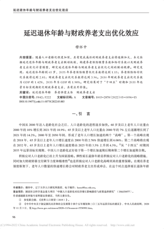 随着人口老龄化程度加深,具有兜底属性的财政养老支出将逐渐加大,文章依据延迟退休年龄与财政养老支出联动机制,构建养老保险缴费系数和给付系数以及财政养老支出优化计量模型,研究延迟退休年龄与财政养老支出优化之间的联动规律。研究发现:延迟退休年龄到65岁,2035年养老保险缴费优化系数将达到1.15;养老保险给付优化系数将达到2.81;财政养老支出优化系数将达到3.96。2030年财政养老支出优化系数为GDP的1.42%,2035年为GDP的1.98%。研究结果对于“十四五”时期和2035年远景目标实现期优化财政养老支出,具有应用价值。