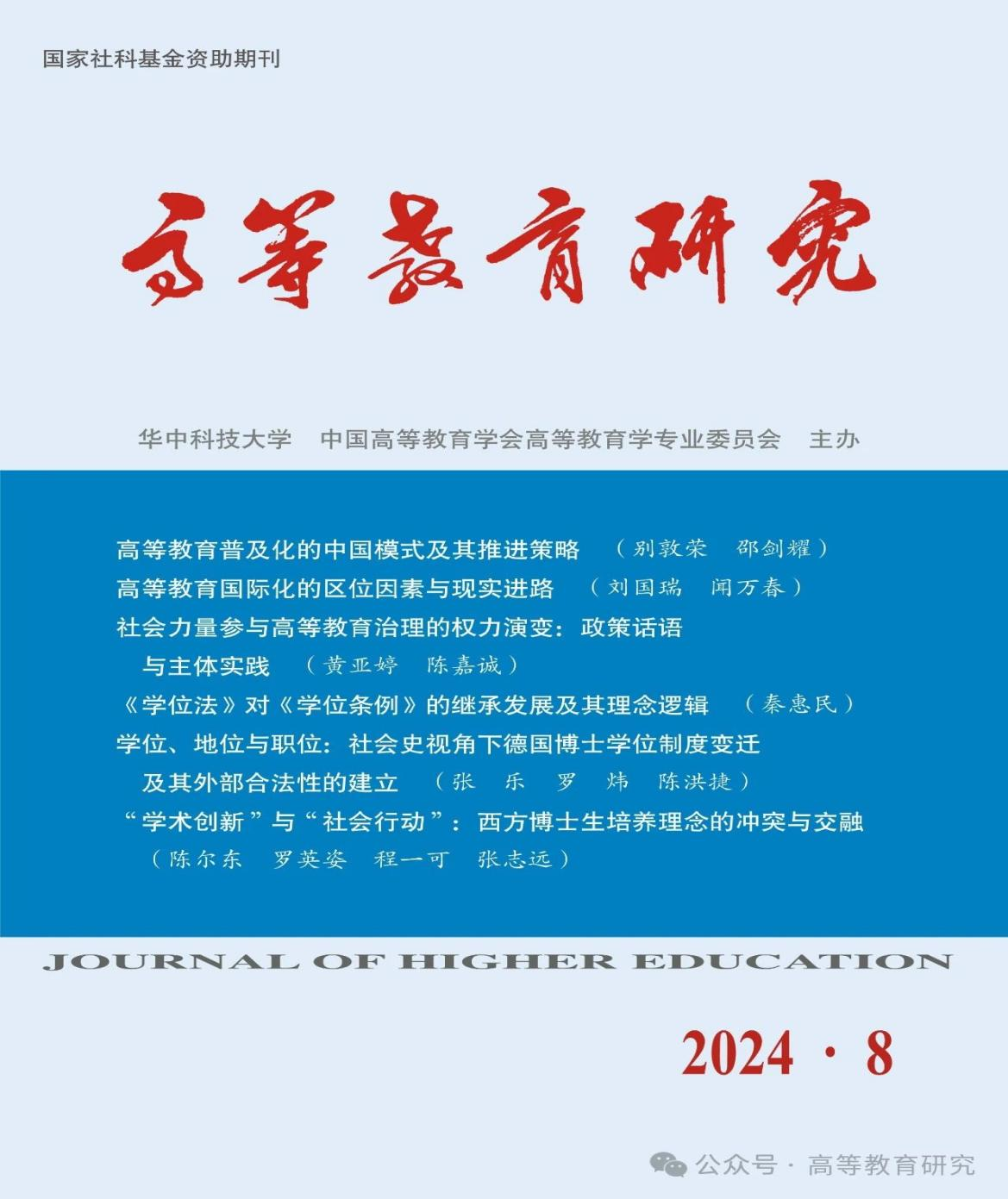 高等教育研究所刘国瑞研究员与博士研究生闻万春合作完成的论文“高等教育国际化的区位因素与现实进路——基于东北振兴的视角”在国家社科基金资助期刊、全国中文核心期刊、CSSCI来源期刊、AMI权威期刊《高等教育研究》杂志发表封面文章。