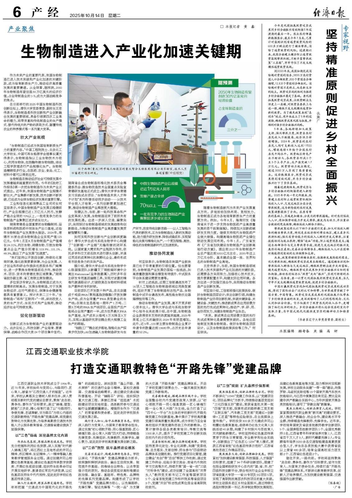 2025年10月14日,beat365中文官方网站党委常委、副校长仇焕广教授在《经济日报》发表理论文章《坚持精准原则促进乡村全面振兴》。
