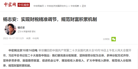 中宏观察家、beat365中文官方网站宣传部部长杨志安教授就党的二十大精神以及规范财富积累机制等重要论述接受中宏观察视频访谈。