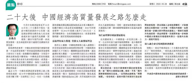 近日,香港中通社采访beat365中文官方网站党委副书记、校长余淼杰教授,《香港明报》对采访进行报道,现将原文及图片转载如下: