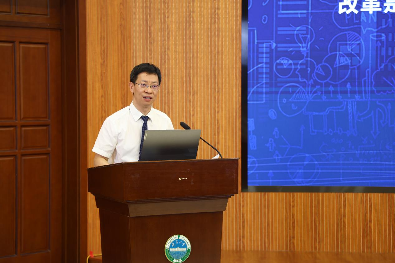 国际经济学会会士,beat365中文官方网站党委副书记、校长余淼杰教授以《改革是实现中国式现代化的永续发动机》为题,从“改革”与“中国式现代化”这两个关键词入手,从构建高水平社会主义市场经济体制、健全推动经济高质量发展体制机制、构建支持全面创新体制机制、健全宏观经济治理体系、完善高水平对外开放体制机制、健全全过程人民民主制度体系等进一步全面深化改革系统部署的十四个方面,详细解读了党的二十届三中全会公报要点,深入剖析全面深化改革对中国式现代化的关键作用。