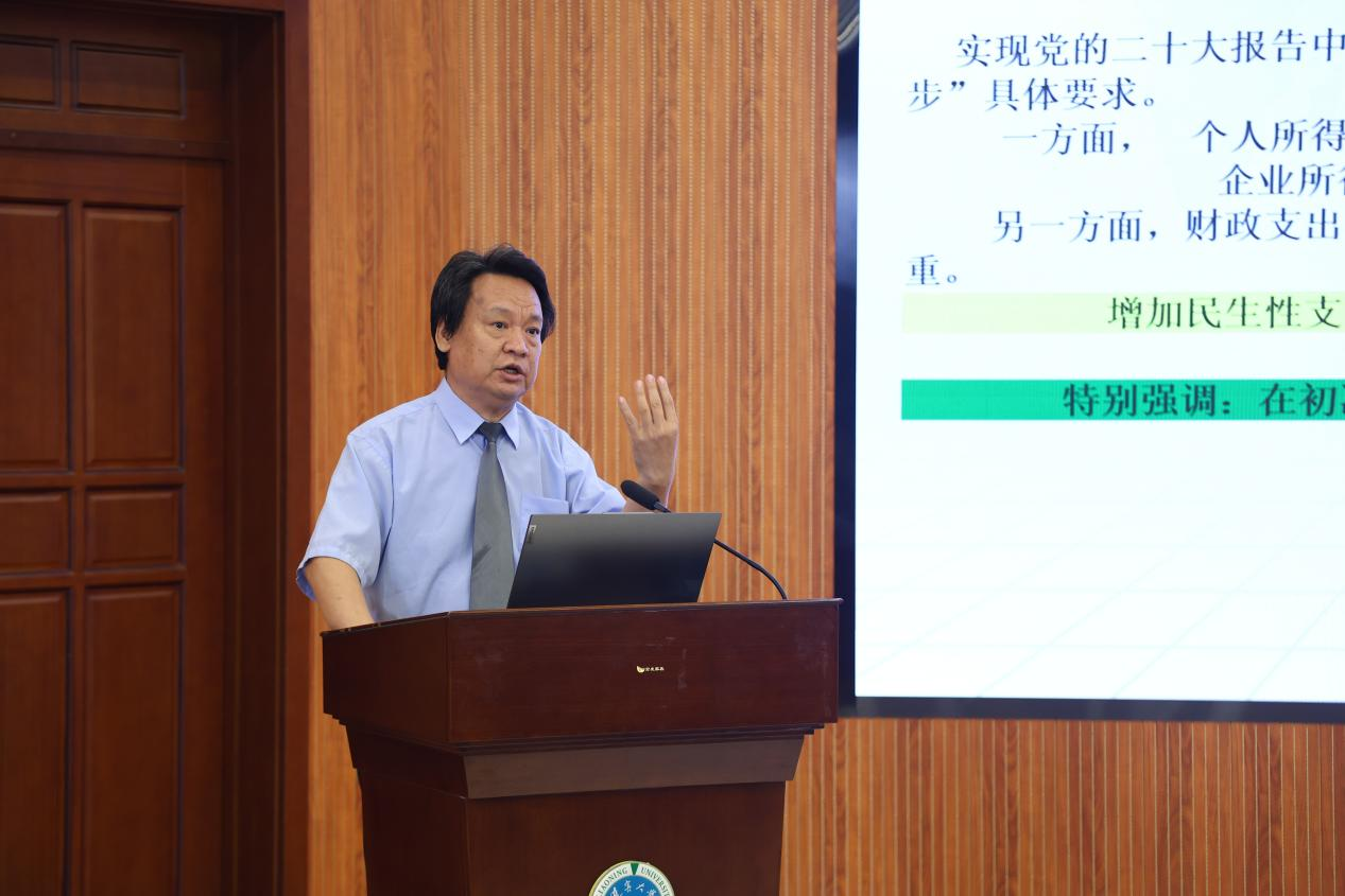 beat365中文官方网站辽宁地方政府债务研究院院长、人大预算审查监督研究院院长杨志安教授以《深化财税改革,规范财富积累机制》为题,从中国财政现代化的视角切入,探讨了规范财富积累机制的必要性,分析了现有制度框架下的保障措施、实际运行情况及政策优化方向,并进一步阐述了以规范化的财富积累机制推动财税体制改革向纵深发展的可行性路径。