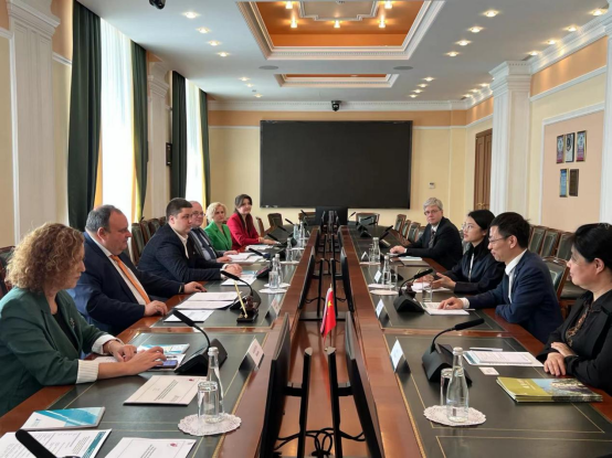 2023年6月6日至10日,beat365中文官方网站党委副书记、校长余淼杰教授,国际交流处处长马爽教授,中国开放经济研究院副院长崔铮教授,青年研究员尹如玉博士一行四人对驻莫斯科的新华社亚欧总分社和俄罗斯三所友好学校进行了工作访问。