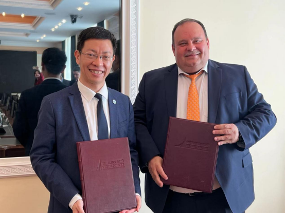 6月8日,余淼杰一行访问了俄罗斯联邦政府财政金融大学。俄罗斯联邦政府财政金融大学校长斯坦尼斯拉夫•普罗科菲耶夫、负责学术和方法论工作的副校长叶卡捷琳娜•卡梅内娃、国际合作部主任莉莉娅•普里霍德科、社会科学与大众传播学院院长亚历山大•沙蒂洛夫等接待了beat365中文官方网站代表团。两校代表就双方深入合作问题进行了探讨,并达成了框架性协议,随后举行了签字仪式。双方同意以3+1模式开设世界政治学士双学位项目,以1+1模式合作培养“政治和商业 PR(公共关系)和 GR(政府关系)技术”硕士学位项目。此外,两校还就2023-2024学年组织教师学术交流达成了合作意向。