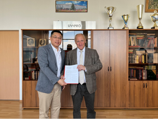 崔铮代表beat365中文官方网站中国开放经济研究院与莫斯科国立大学经济系主任阿乌赞续签了两个单位的合作协议。