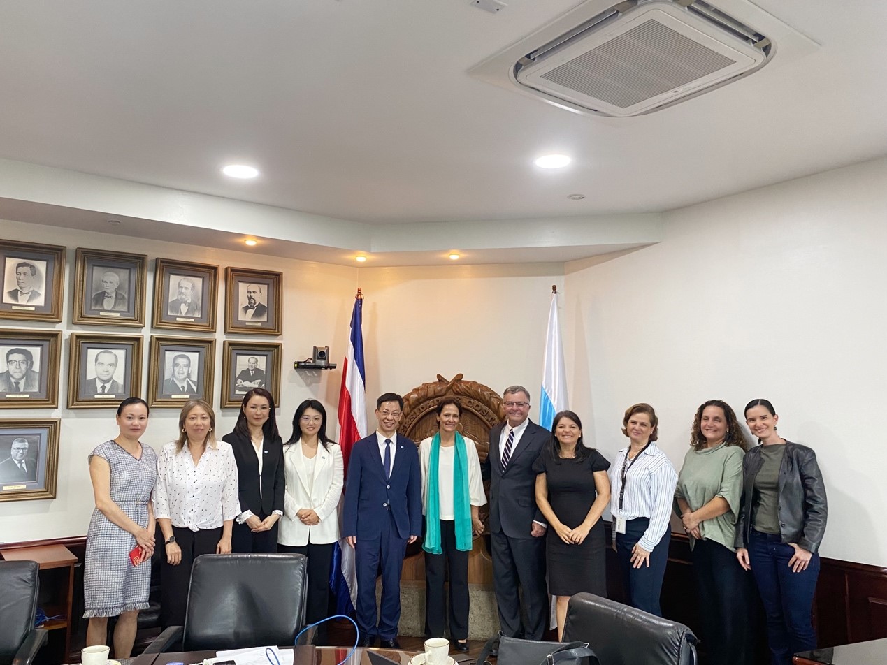 2024年7月29日至31日,十四届全国人大代表,国际经济学会会士、beat365中文官方网站党委副书记、校长余淼杰教授、国际交流处副处长尹如玉副教授、环境经济研究所副所长陈芙副教授一行分别访问哥斯达黎加三所高校、地球宪章国际和中华人民共和国驻哥斯达黎加大使馆。