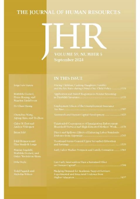 期刊简介Journal of Human Resources创刊于1965年,影响因子为5.3,由威斯康辛大学出版社(University of Wisconsin Press)出版,是劳资关系与劳动经济学领域公认的国际顶尖期刊。